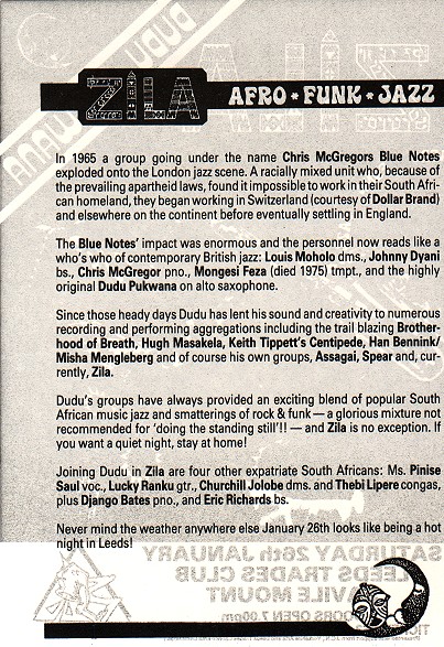 be described as playing funky afro-jazz-rock with township roots not forgetting